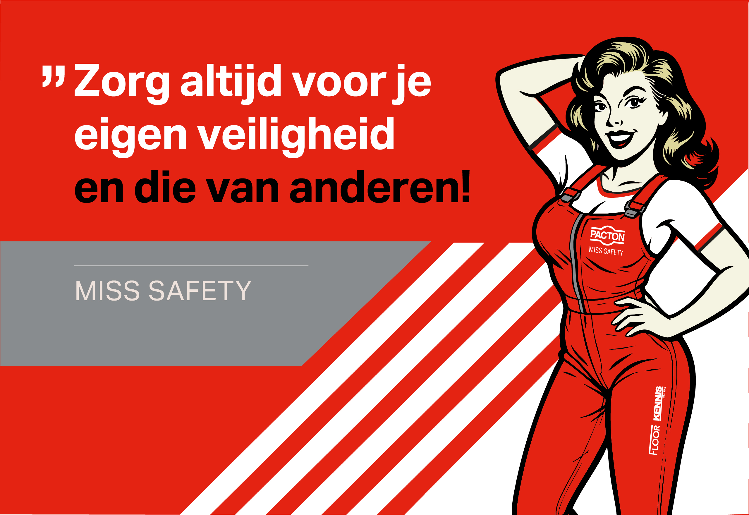 Het bouwen van kwalitatief hoogwaardige trailers en aanhangwagens begint met goede afspraken over veiligheid en het vermijden van onnodige risico’s. Vandaar dat iedere werknemer het ‘Beleid voor kwaliteit, veiligheid, gezondheid en milieu’ overhandigd krijgt. Luchtig vormgegeven met verhalen, een opdracht en animaties om het leesbaar te maken. Of zoals Miss Safety zegt: “Zorg altijd voor je eigen veiligheid en die van anderen”