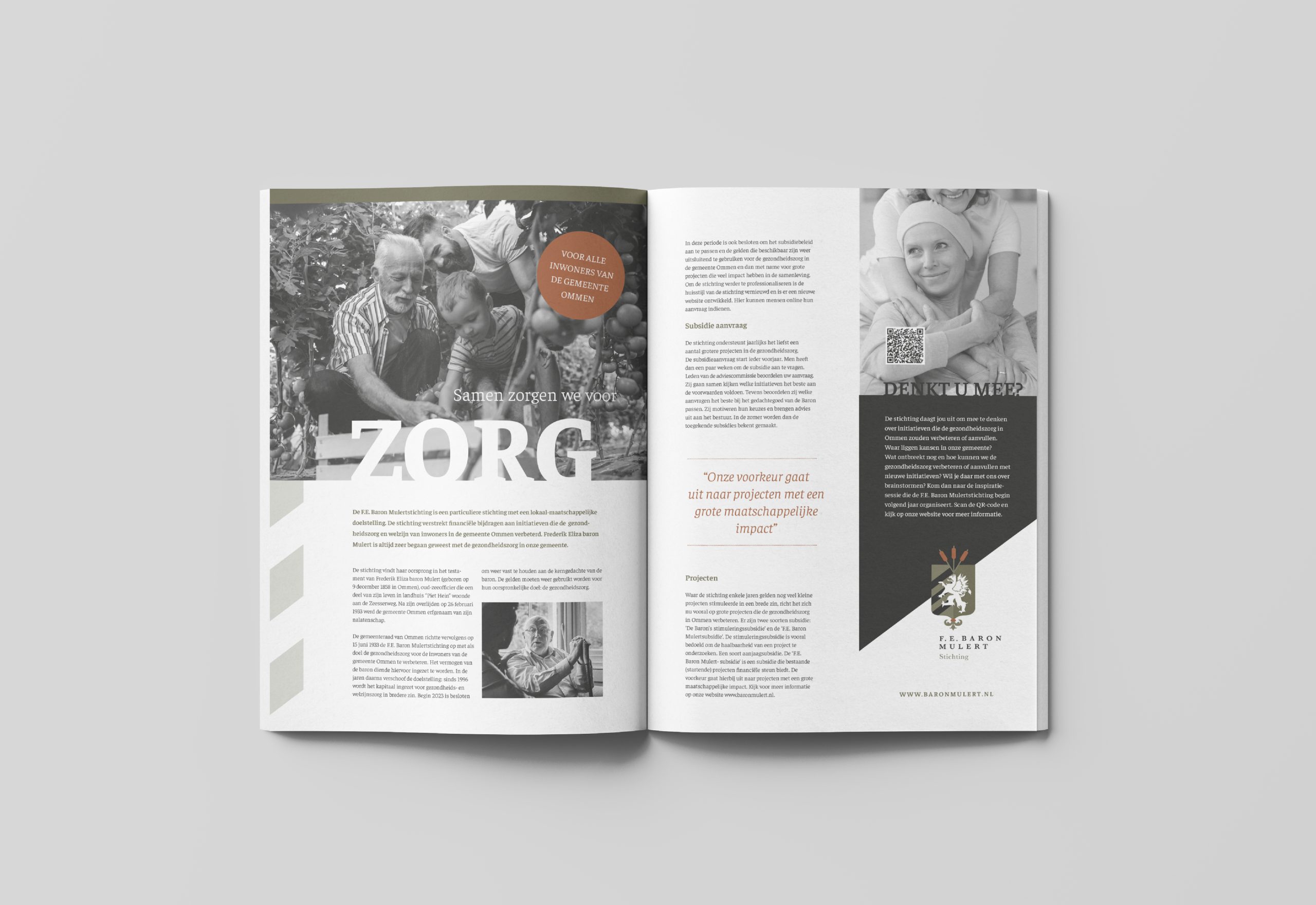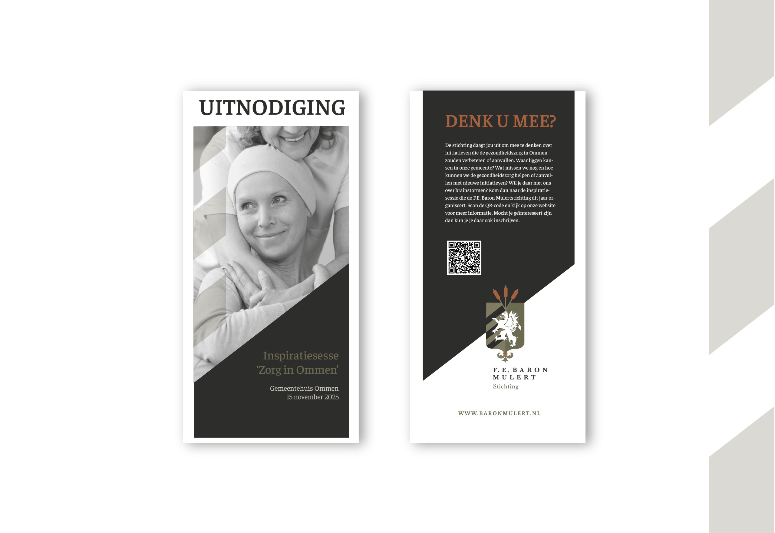 De F.E. Baron Mulertstichting is een particuliere stichting met een lokaal-maatschappelijke doelstelling. De stichting verstrekt financiële bijdragen aan initiatieven die de gezondheidszorg en welzijn van inwoners in de gemeente Ommen verbeterd. Naast de huisstijlontwikkeling hebben we de stichting onlangs ook begeleidt in een inspiratiesessie om te kijken waar we de gezondheidszorg kunnen versterken of aanvullen. Waar liggen de kansen en hoe kunnen we met nieuwe inzichten echt impact maken in onze gemeente? Een inspirerende avond wat resulteerde in mooie gesprekken en waardevolle oplossingen. Benieuwd hoe we deze kansen om gaan zetten in resultaten? Blijf ons volgen, want samen zorgen we voor zorg.