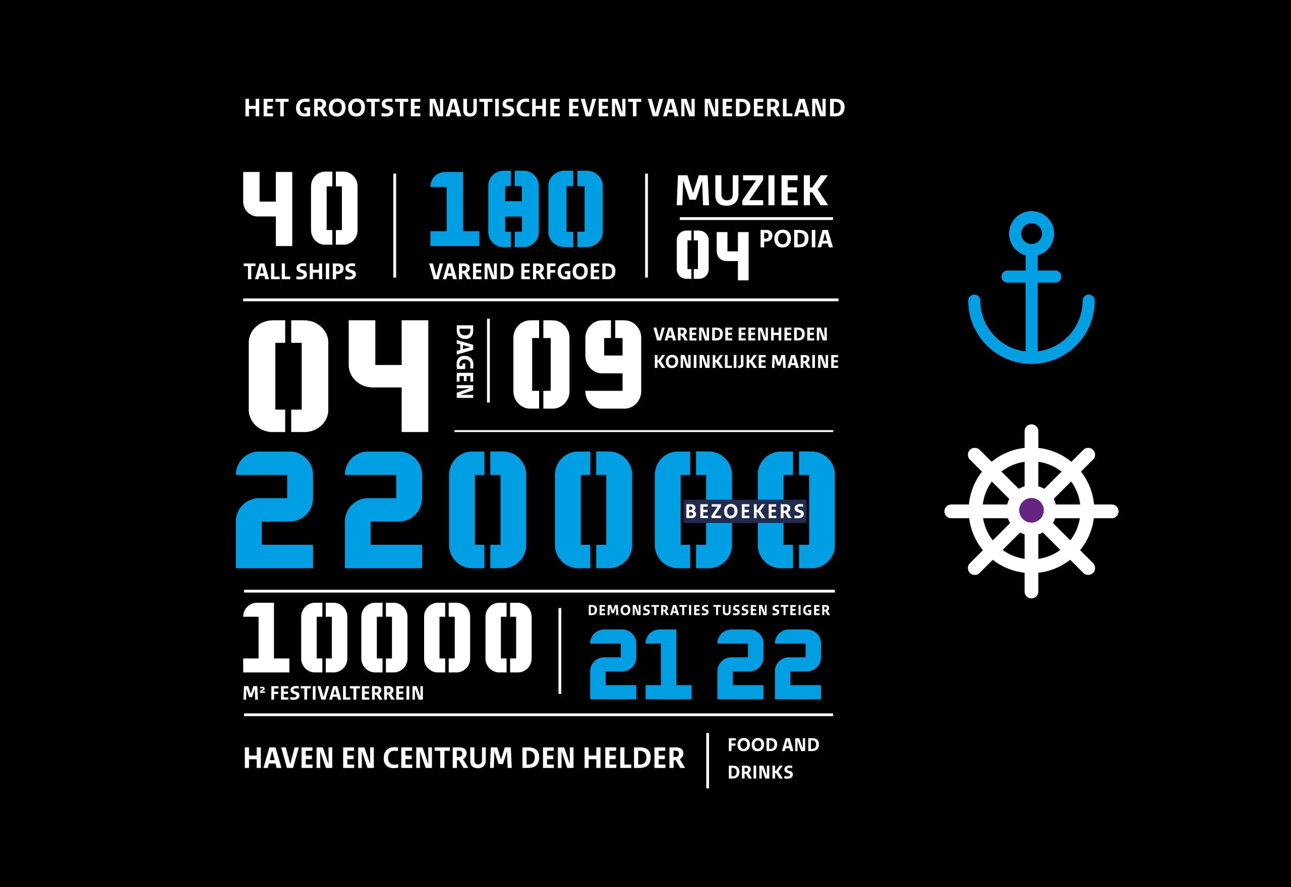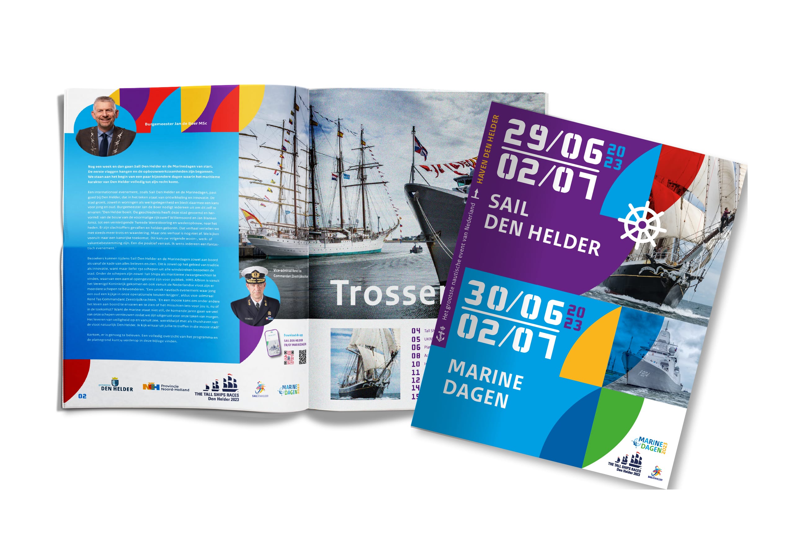 Eens in de vijf jaar vaart een groot aantal Tall Ships van over de hele wereld de haven van Den Helder binnen voor Sail Den Helder. In 2024 werd het event samen georganiseerd met de Koninklijke Marine. 4 dagen, 40 Tall Ships, 180 varend erfgoed, 4 podia, food and drinks en ruim 220.000 bezoekers. De uitdaging was om twee verschillende huisstijlen (Sail Den Helder en de Vlootdagen van de Koninklijke Marine) samen te laten komen in één visuele communicatie. Basisvorm is het zeil van een zeilschip. Door te repeteren en te roteren ontstond er een basisstramien dat een grafische weergave is van de golven, de wind en het dynamische van de schepen en de haven. Mede door twee kleurstellingen in dezelfde vormentaal toe te passen komen beide huisstijlen samen. Door deze vormentaal consistent door te voeren ontstaan er een sterke visuele identiteit.
